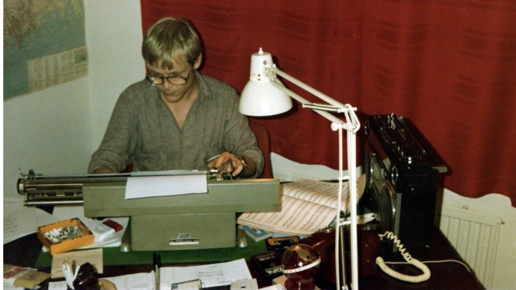 Raul Reiman teki töitä kotona ja viimeisteli sanoitukset kirjoituskoneella.